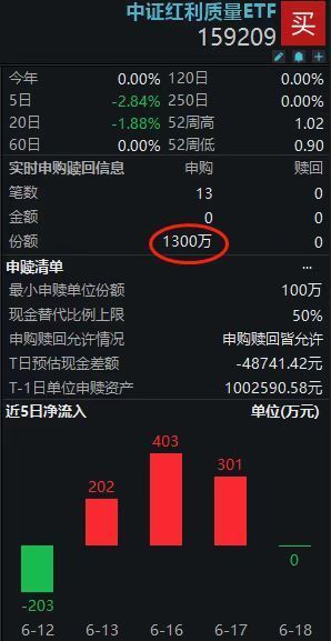 中国股票配资网官网 单日环比放量超200%!中证红利质量ETF(159209)持续活跃,盘中获近1300万增持